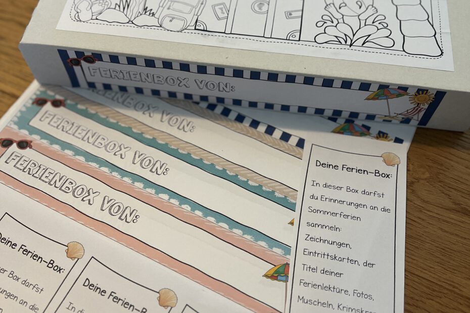 Ja, mir ist durchaus bewusst, dass nicht alle Kinder in unserem Schulsystem schöne Sommerferien haben werden, zu den sie sich Erinnerungen aufheben möchte. Bei meiner Klasse bin ich mir aber relativ sicher, dass dies der Fall sein wird und ich traue mich, ihnen diese Kiste mitzugeben. Innen drin befindet sich neben einer kurzen Anleitung auch das Sommerferien-Heft von www.coollama.de, das man sich dort kostenlos ausdrucken kann.